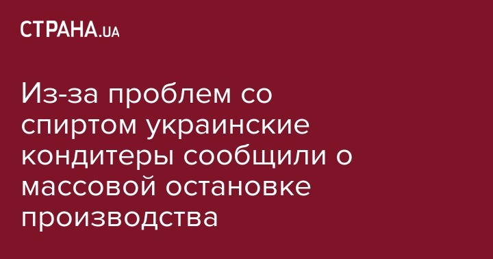 "Предприятия используют спирт как сырье при производстве бисквитов, рулетов, шоколадных конфет, поэтому после остановки отгрузки спирта с 1 июля 2019 года предприятия эту продукцию производить не смогут. Сейчас частично парализована работа десятка предприятий пищевой промышленности, зафиксирована остановка производства 30 тыс. тонн кондитерской продукции", - говорится в открытом письме ассоциации к правительству и "Укрспирту".
