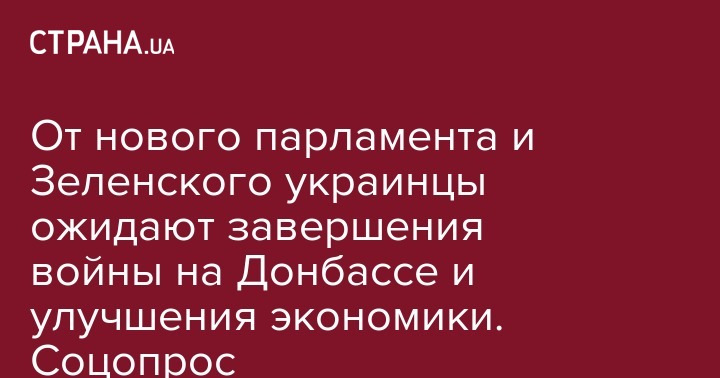 От парламента 9 созыва, который изберут на внеочередных выборах 21 июля, а также от президента Владимира Зеленского, жители Украины ожидают прежде всего мира на Донбассе. Такие результаты показал соцопрос группы "Рейтинг", проведенный 12-23 июня.