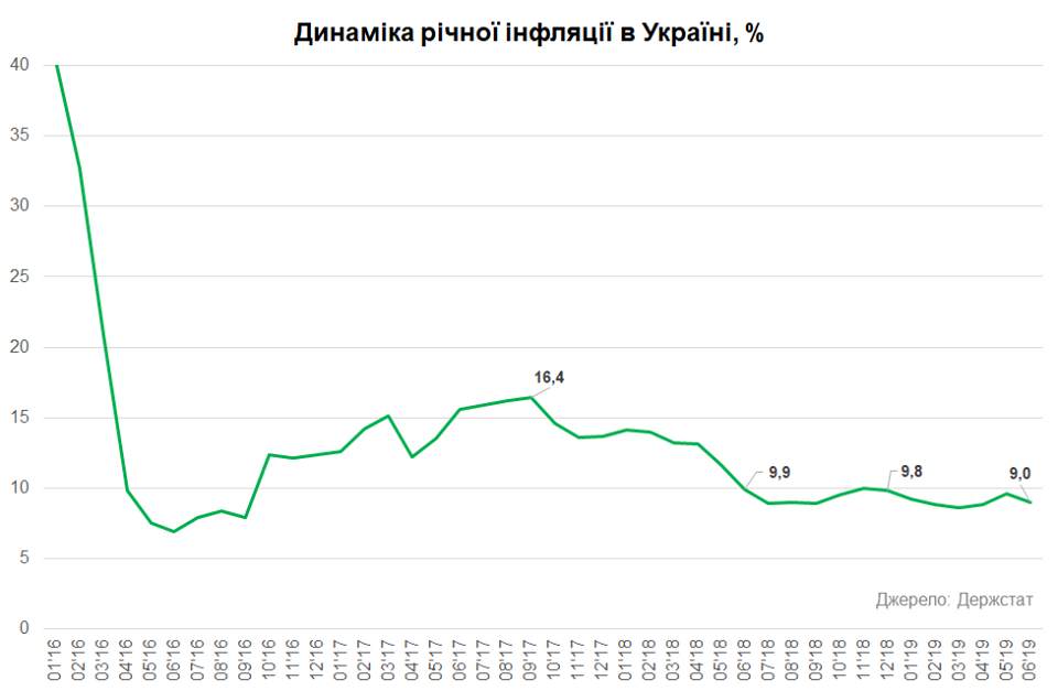 Согласно информации статистиков, инфляция в Украине в июне 2019 года в годовом выражении составила 9%, замедлившись с 9,6% в годовом выражении месяцем ранее. "С показателем 9% год к году наша страна занимает 22-24 позицию по этому показателю. При этом Украина остается государством с наибольшей инфляцией среди европейских стран", - отмечают эксперты НБУ.