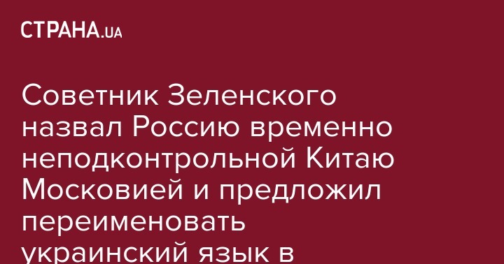 Советник Зеленского назвал Россию временно неподконтрольной Китаю Московией и предложил переименовать украинский язык в русский. Видео
