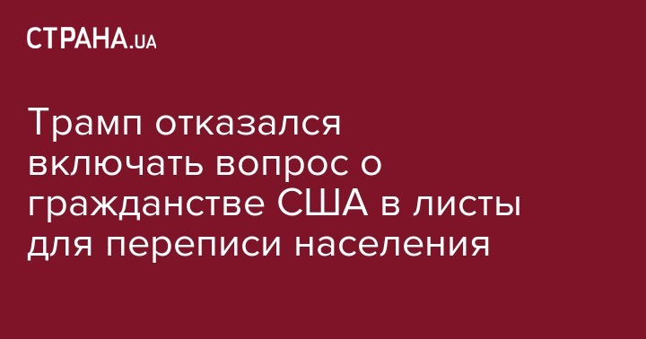 Президент США Дональд Трамп отказался от планов включить в переписные листы на предстоящей в 2020 году всеобщей переписи населения вопрос о гражданстве, и вместо этого поручил федеральным ведомствам собрать эти данные по своим каналам, издав соответствующий исполнительный указ.