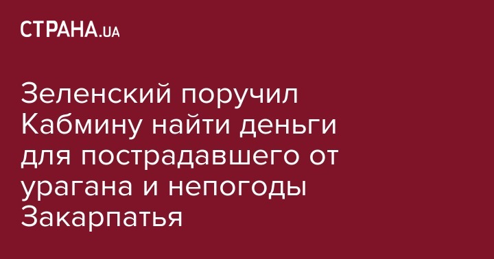 Зеленский поручил Кабмину найти деньги для пострадавшего от урагана и непогоды Закарпатья