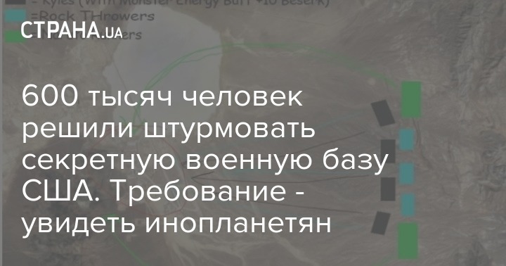 Более 600 тысяч человек в Facebook выразили желание взять штурмом секретную американскую военную базу "Зона 51" в Неваде. Ранее сбор на это мероприятие в шутку опубликовали в фб-сообществе Shitposting cuz im in shamble.