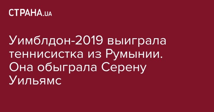 Уимблдон-2019 выиграла теннисистка из Румынии. Она обыграла Серену Уильямс