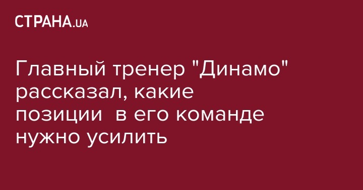 Главный тренер "Динамо" рассказал, какие позиции в его команде нужно усилить