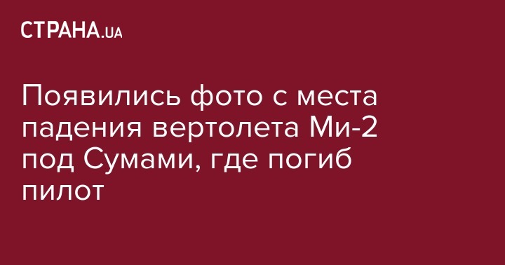 Появились фото с места падения вертолета Ми-2 под Сумами, где погиб пилот