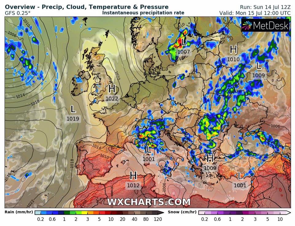 По словам синоптика, вероятность дождей с грозами очень высока на западе, севере страны и в большинстве центральных областей. При этом грозы могут сопровождаться ливнями и шквалами. А вот в Днепропетровской области, на юге и востоке Украины существенные осадки вряд ли омрачат теплый день.