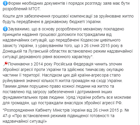 В Кабмине на заседании 10 июля приняли решение компенсировать до 300 тысяч гривен за разрушенное в ходе боевых действий жилье на Донбассе.