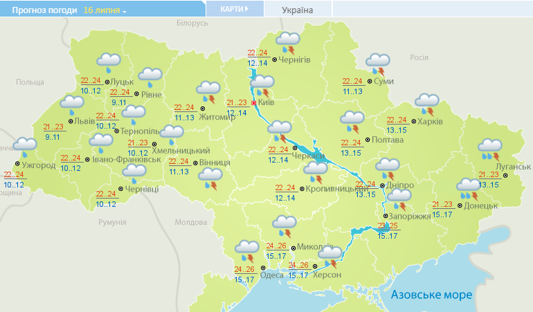 "Пока грозы, но жара близко". Прогноз погоды в Украине на вторник, 16 июля
