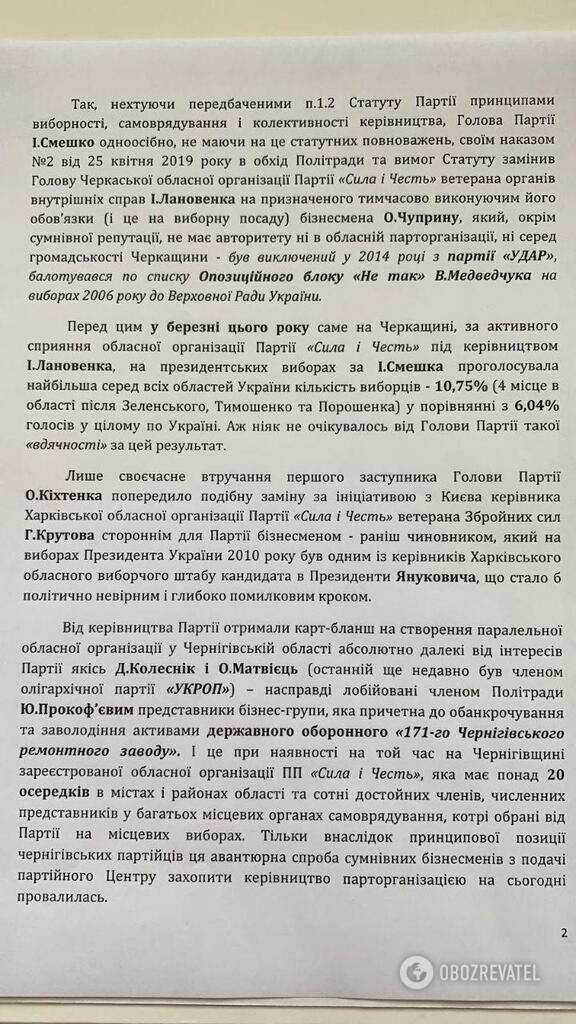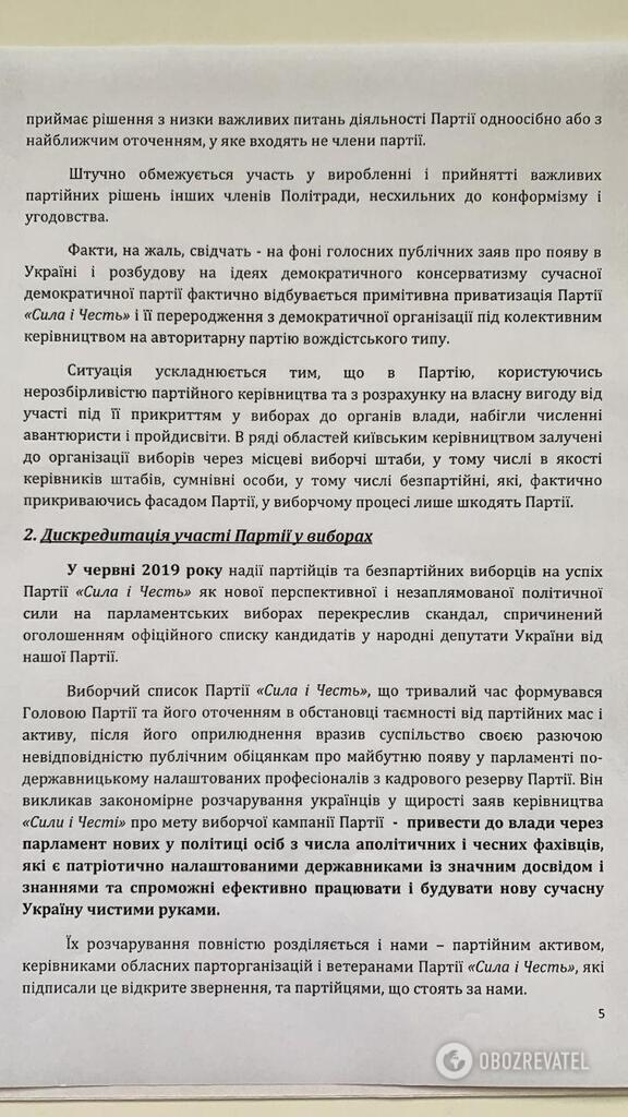 Об этом говорится в открытом обращении партийного руководства "Силы и чести" – руководителей областных ячеек и ветеранов политсилы – в связи с удручающей ситуацией за неделю до внеочередных парламентских выборов, который оказался в распоряжении редакции.