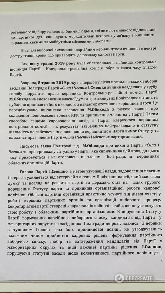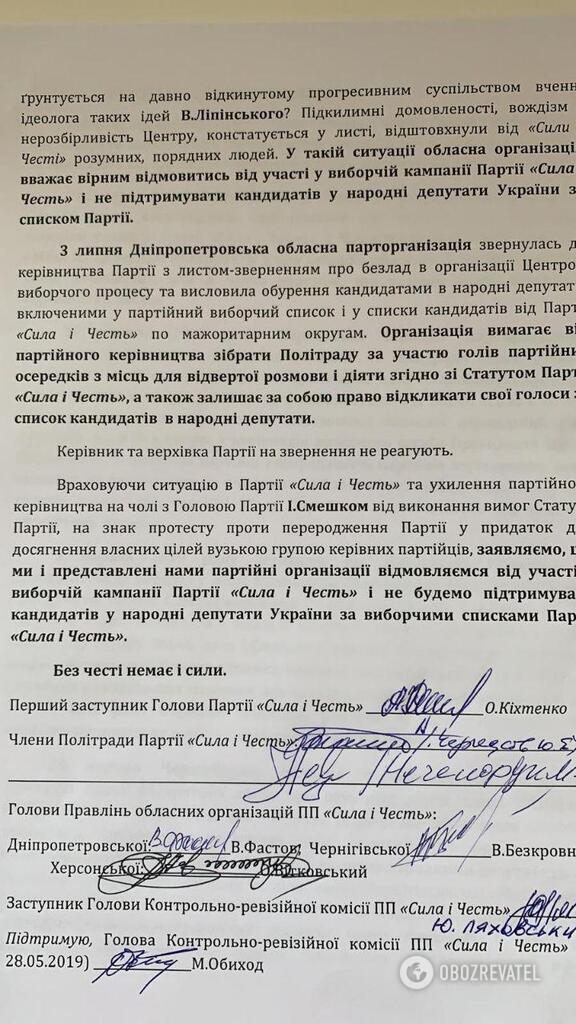 В партии Игоря Смешко "Сила и честь" продолжается крупный скандал, связанный с тем, что первые места в списке на внеочередные парламентские выборы 2019 года были проданы полностью "чужим" людям, которые никакого отношения к ней ранее не имели, пишет Обозреватель.