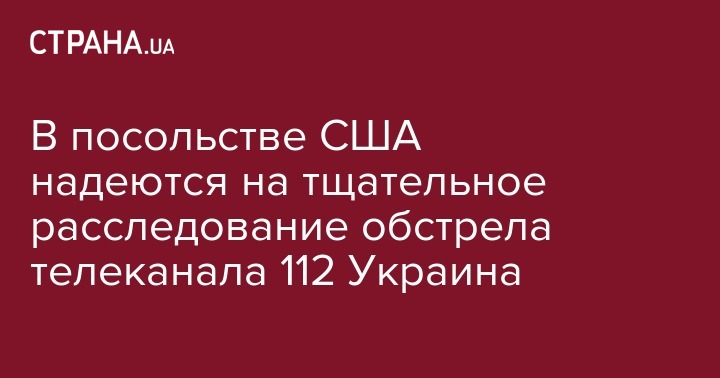 В Посольстве Соединенных Штатов Америки в Украине ожидают тщательного расследования обстрела здания телеканала "112 Украина" из гранатомета. Об этом говорится в сообщении посольства в Facebook.