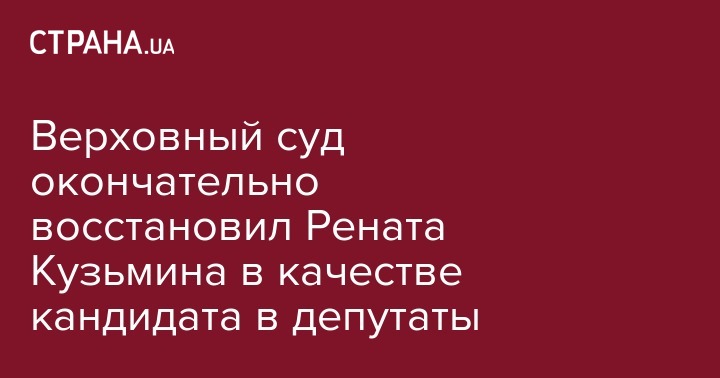 "Именем Украины Верховный Суд подтвердил законность отмены Шестым апелляционным административным судом незаконного снятия с регистрации кандидатом в народные депутаты по спискам "Оппозиционной платформы — За жизнь", - напиcал Ренат Кузьмин на своей странице в Facebook.