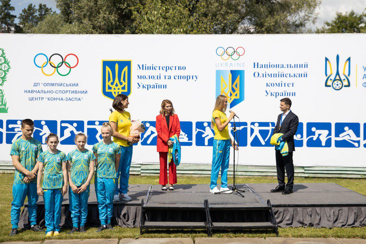 Сегодня, 16 июля президент Украины Владимир Зеленский и первая леди Елена Зеленская посетили Олимпийский учебно-спортивный центр в Конча-Заспе. После вручения госнаград чемпионам мира по футболу (U20) президент пообщался с олимпийцами и членами национальных сборных по другим видам спорта.