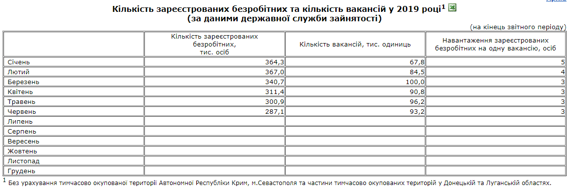 Также стоит отметить, что в июле в Украине насчитывается наименьшее количество безработных в 2019 году, что касается вакансий, их было больше в марте и мае.