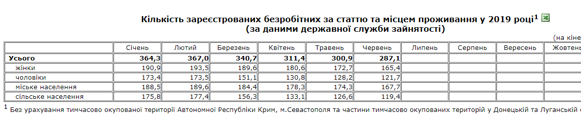 По состоянию на 1 июля 2019 года в Государственной службе занятости было зарегистрировано 287,1 тыс. безработных, что на 13,8 тысяч меньше, чем месяц назад. Об этом свидетельствует информация, обнародованная Государственной службой статистики.