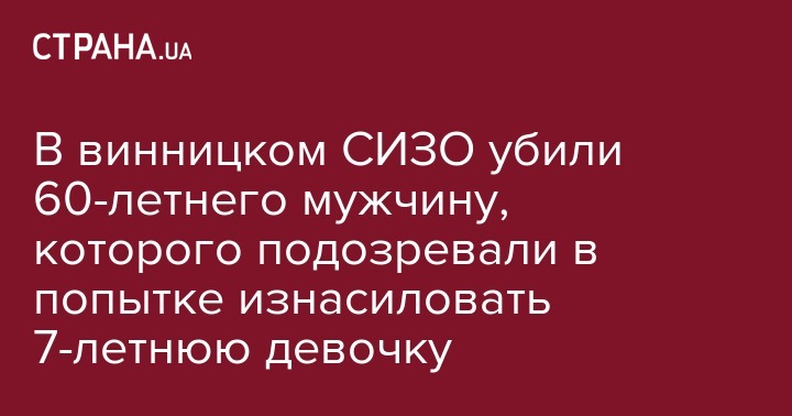 В винницком СИЗО убили 60-летнего мужчину, которого подозревали в попытке изнасиловать 7-летнюю девочку