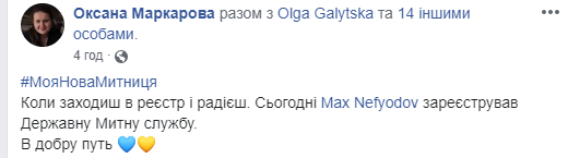 "Когда заходишь в реестр и радуешься. Сегодня Максим Нефедов (назначенный по итогам конкурса глава ГТС – прим. ред.) зарегистрировал Государственную таможенную службу", - прокомментировала она.
