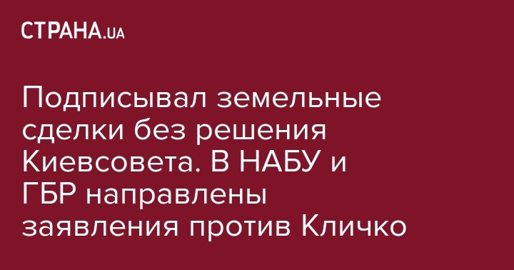 "Друзья, информирую, что нами поданы первые заявления о преступлении в НАБУ и ГБР в отношении Виталия Кличко. Подписывал земельные сделки без решения Киевсовета. В ближайшие дни будут поданы новые заявления", - написала она.