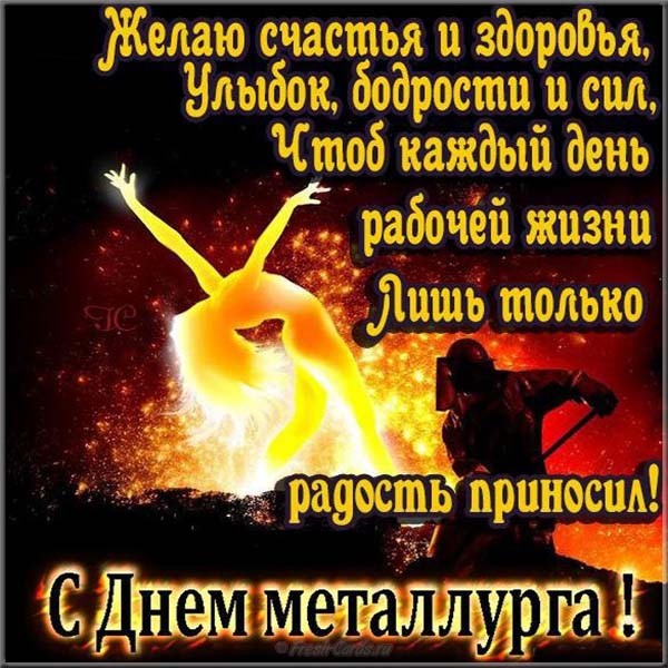 С Днем металлурга! Стального здоровья, железных нервов и пламенных страстей.