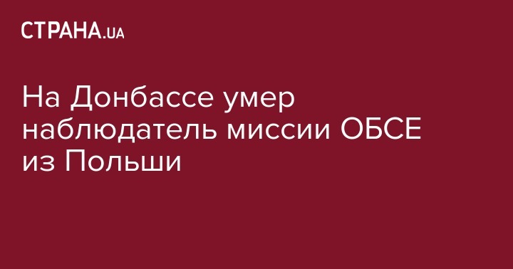 На Донбассе умер наблюдатель миссии ОБСЕ из Польши