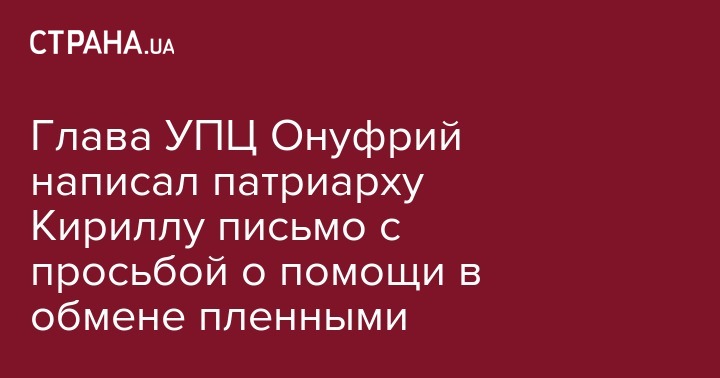 "Я уже обратился с письмами и к Святейшему патриарху Кириллу, чтобы он со своей стороны организовал ходатайство за наших военнопленных, и к нашему президенту (Владимиру Зеленскому - прим. ред.) с соответствующим письмом, чтобы восстановить этот процесс", - сказал Онуфрий.