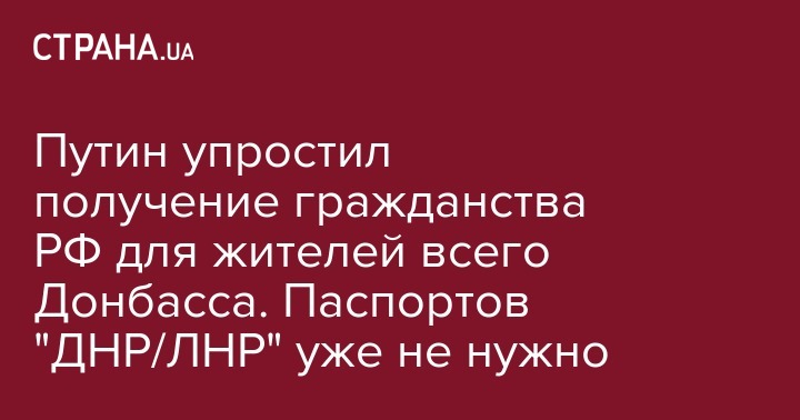 Путин упростил получение гражданства РФ для жителей всего Донбасса. Паспортов "ДНР/ЛНР" уже не нужно