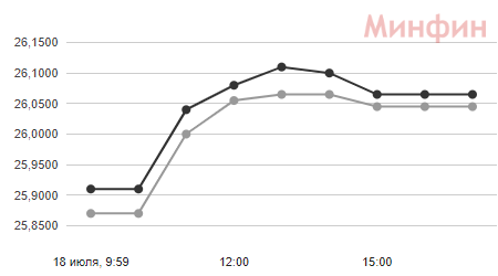 Межбанк стартовал в 10:00. 17 июля он закрылся с котировками: 25,87 (покупка) и 25,91 (продажа).