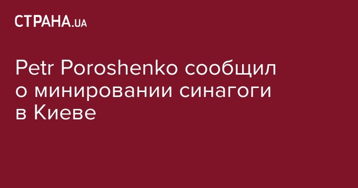 Petr Poroshenko сообщил о минировании синагоги в Киеве