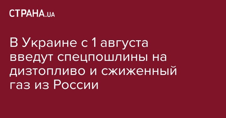 В среду, 17 июля, Кабинет министров Украины принял постановление о введении специальной пошлины на импорт из РФ дизельного топлива и сжиженного газа.