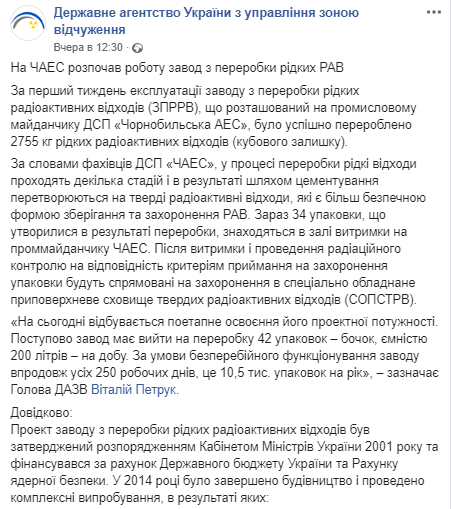 Скриншот: Facebook/Державне агентство України з управління зоною відчуження