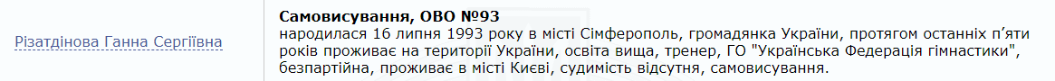Также мы сообщали, что Анна Ризатдинова пойдет на выборы в Верховную Раду как самовыдвиженка по округу № 93, по которому ранее в парламент пытался зарегистрироваться отец сына спортсменки Александр Онищенко.