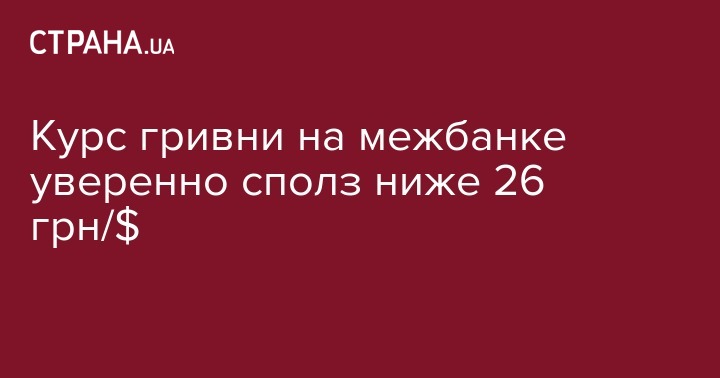 Курс гривни на межбанке уверенно сполз ниже 26 грн/$