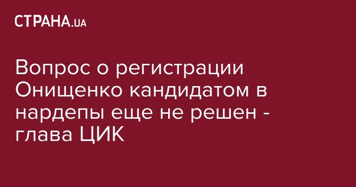 Вопрос о регистрации Онищенко кандидатом в нардепы еще не решен - глава ЦИК