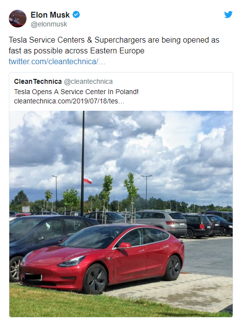 19 июля Tesla открыла свой первый сервисный центр в столице Польши, благодаря чему официальный сервис стал для украинцев в два раза ближе (второй ближайший сервисный центр находится в Берлине). Об этом сам Илон Маск напиcал в twitter.