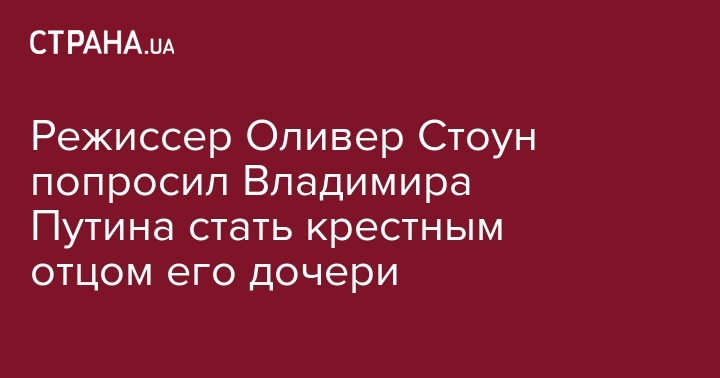 На сайте Кремля появилось интервью американского режиссера Оливера Стоуна с российским лидером Владимиром Путиным, которое состоялось еще 19 июня. В ходе интервью Стоун попросил Путина стать крестным его дочери.