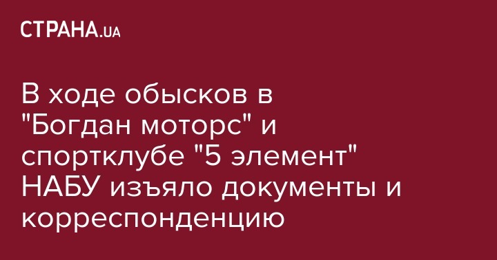 По данным источника в Национальном антикоррупционном бюро Украины, по состоянию на субботу, 20 июля, обыски завершены. В ходе следственных мероприятий были изъяты документы и корреспонденция, сейчас в НАБУ их анализируют. В спортклубе "5 элемент" при обысках были зафиксированы попытки неизвестных помешать мероприятиям.