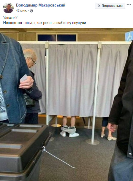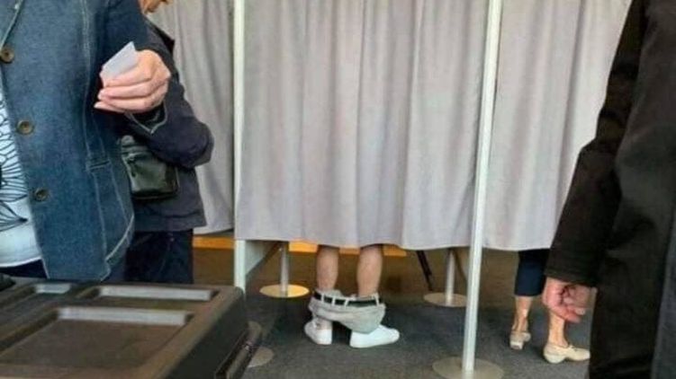 21 июля в день выборов в Верховную Раду в соцсетях набирает популярность, мягко говоря, необычное фото с избирательного участка. На нем видно, что в одной из кабинок для голосования избиратель делает свой выбор, спустив брюки. Однако история этого снимка совсем не украинская.