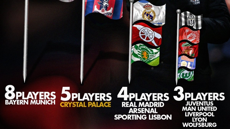 Так, например, уже выяснили, что на Евро остались играть игроки из десяти клубов - это Бавария, Кристал Пэлэс, Реал, Арсенал, Спортинг, Ювентус, Манчестер Юнайтед, Ливерпуль, Лион и Вольфсбург.