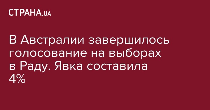 На внеочередных выборах в Верховную Раду 21 июля в Австралии проголосовало всего 4% зарегистрированных украинцев. Об этом сообщает пресс-служба посольства Украины в Австралии в Facebook.