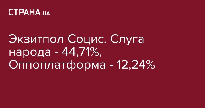Экзитпол Социс. Слуга народа - 44,71%, Оппоплатформа - 12,24%