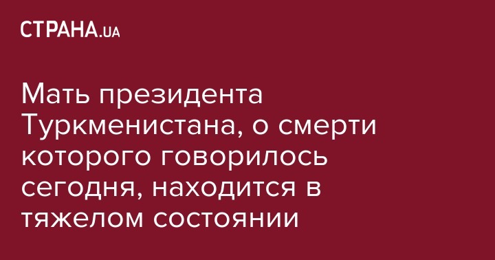 Мать президента Туркменистана Гурбангулы Бердымухамедова находится в Германии в тяжелом состоянии. Новость сообщает издание "Хроника Туркменистана" со ссылкой на источники.