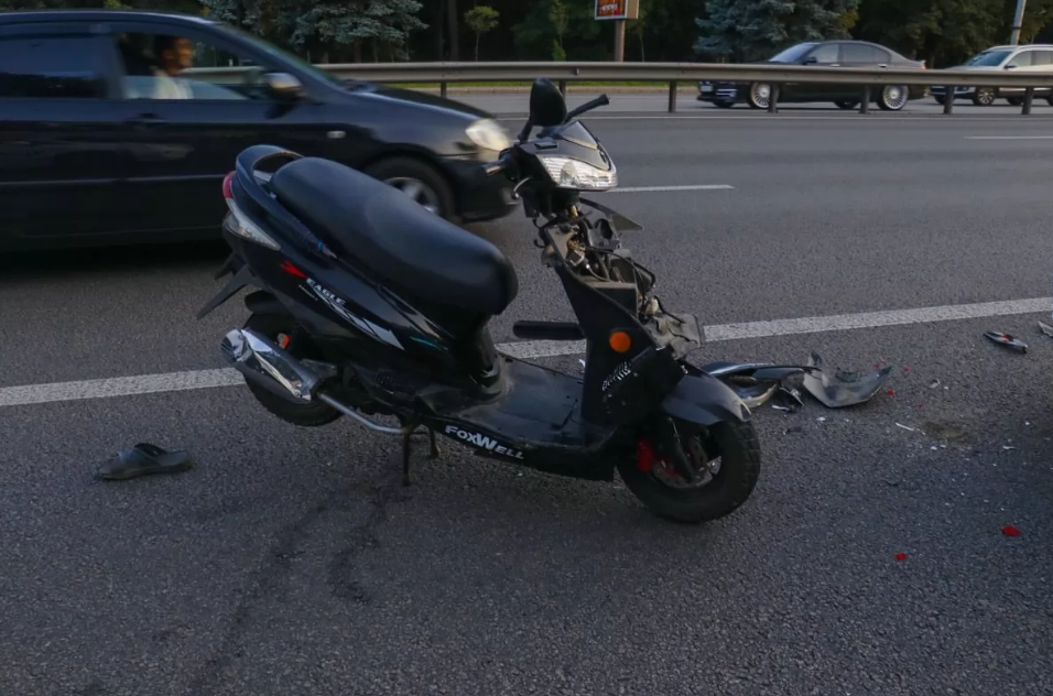 В аварии не обошлось без пострадавших. В результате столкновения водитель скутера влетел в заднее стекло легковушки и получил повреждения. Тяжесть травм пока неизвестна, так как водителя сразу увезла карета скорой помощи.