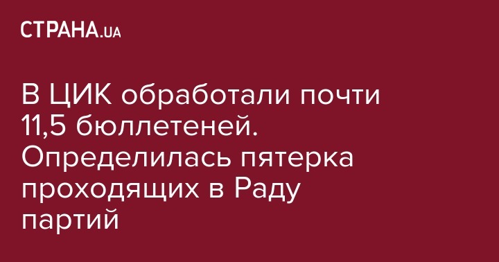 Центральная избирательная комиссия обработала 11,53% бюллетеней. По сравнению с предыдущими промежуточными результатами количество партий, преодолевающих проходной барьер. уменьшилось на одну.. Данные по результатам обработки обнародованы на сайте ЦИК.