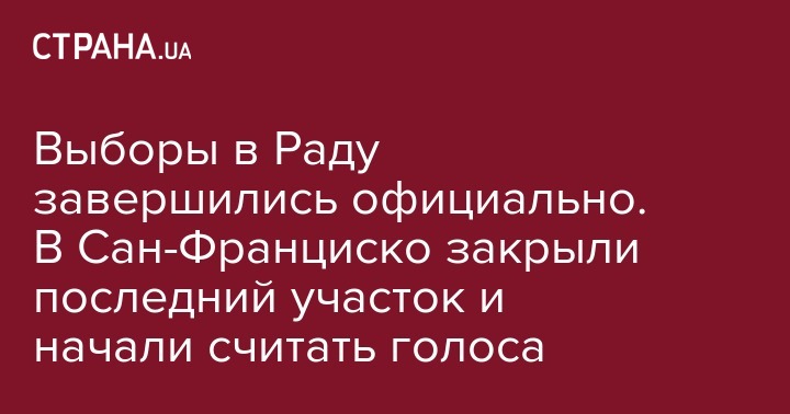 Внеочередные выборы в Верховную Раду Украины официально завершилось утром 22 июля после того, как (сыграла роль разница во времени - Прим.Ред.) закрылся последний избирательный участок - в американском Сан-Франциско. Сейчас там начался подсчет голосов и оформление протоколов голосования, как сообщает Укринформ.