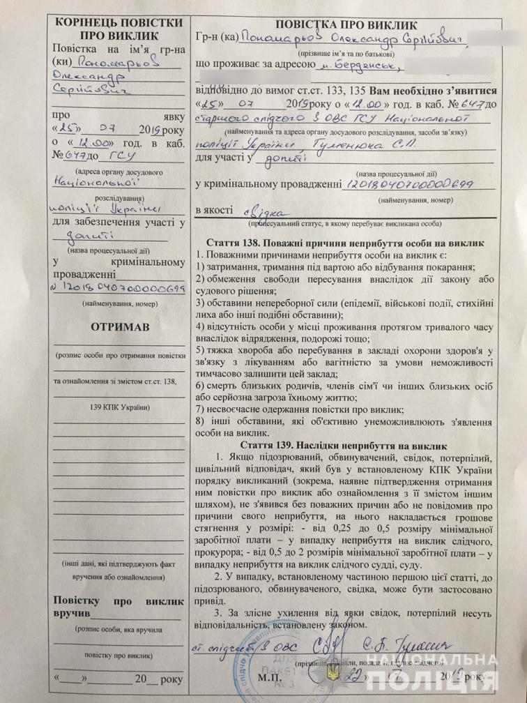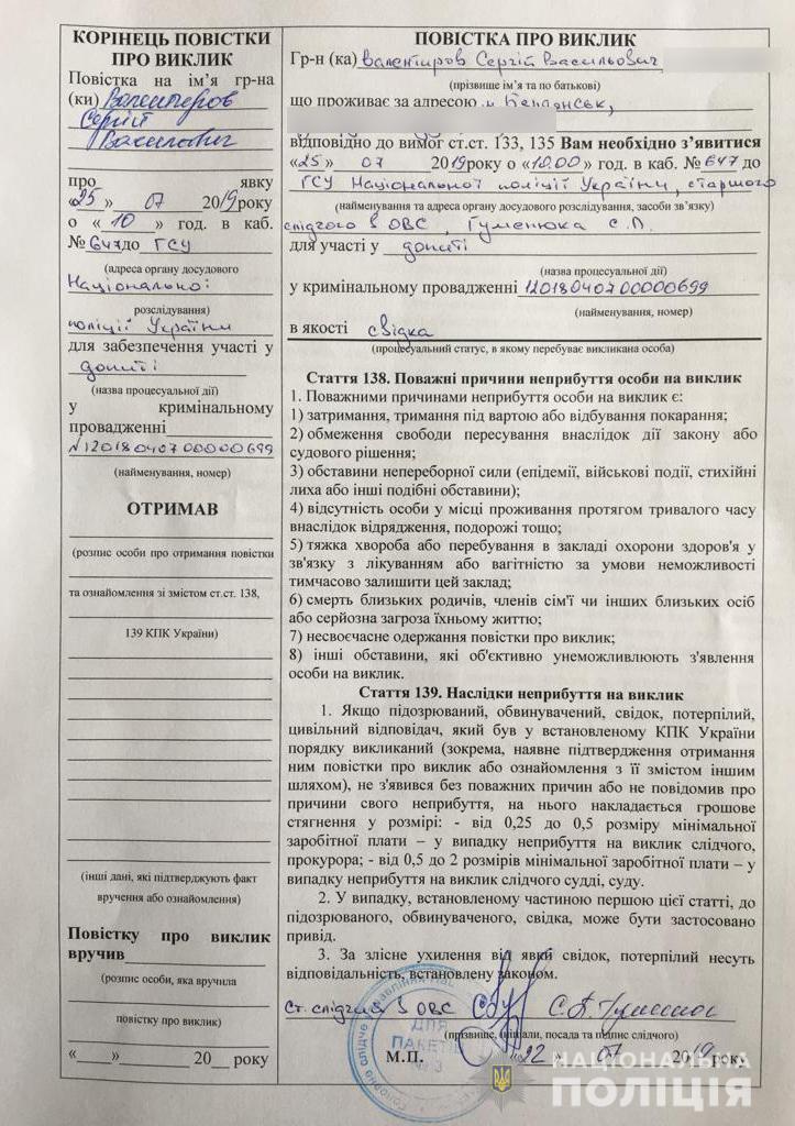 На сайте Нацполиции опубликованы фотокопии повесток.