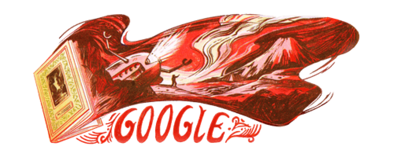 В Google 23 июля появился яркий дудл - изображение первой фантастической повести братьев Стругацких, которая была написана 60 лет назад и получила название "Страна багровых туч".