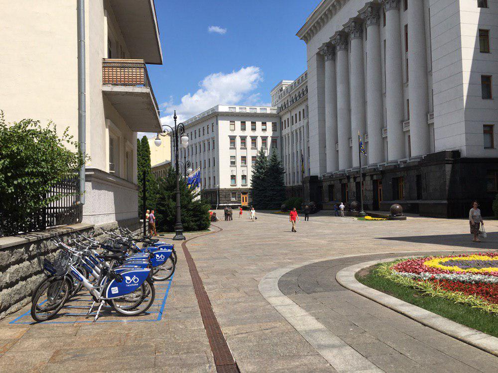 У здания АП в Киеве появился пункт велопроката. Фото