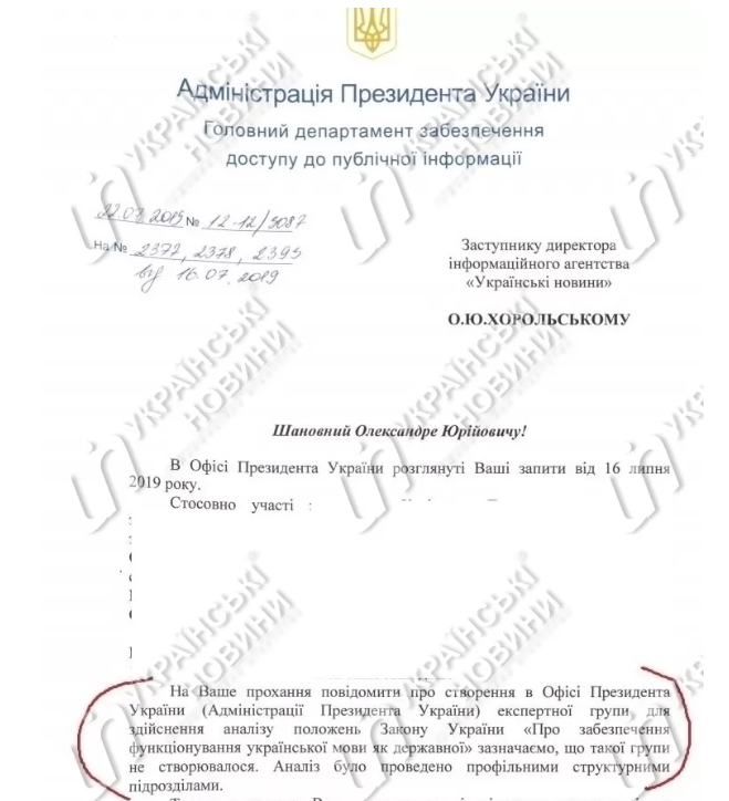 "Анализ был проведен профильными структурными подразделениями", - говорится в ответе Офиса президента.