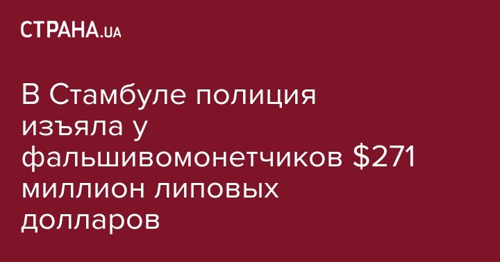 В Стамбуле полиция изъяла у фальшивомонетчиков $271 миллион липовых долларов